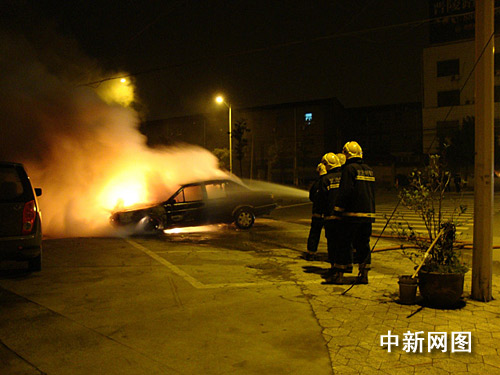 中新網(wǎng)常州十一月十二日電(陳佳 朱曉穎)12日凌晨兩點半,常州市武進(jìn)區(qū)夏城路與廣電路交叉路口發(fā)生了一起汽車自燃事故,其旁邊的一輛小轎車同時燃燒。常州消防武進(jìn)特勤中隊接警后迅速出動1車、6人趕赴現(xiàn)場,經(jīng)過近半個小時的緊張?zhí)幹,火勢被成功撲滅,但兩輛車幾近報廢。