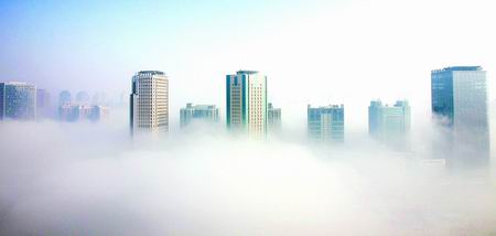 前兩日,鄭州遭遇有氣象記錄以來最大的暴雪襲擊。昨天早上,暴雪后鄭州市區(qū)出現(xiàn)霧海奇觀,市區(qū)建筑在霧中若隱若現(xiàn)猶如“海市蜃樓”,讓人嘆為觀止。“快看,東區(qū)的大樓好像在云朵之上似的!”昨日一大早,很多市民打來熱線反映此事。