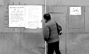 鐵門一側(cè)的墻上,貼著一張接待室遷址的通知,也已被撕得殘破不全。兩側(cè)搭建著10來個(gè)大大小小,形狀各異的塑料棚。一位衣衫襤褸的中年婦人從棚里彎腰走出來,“法院(接訪室)已經(jīng)搬啦,周六就關(guān)門了!彼龔囊路道锾统鲆粡堎徫镄∑贝笮〉耐ㄖ厦嬗≈徇w通知以及新址乘車路線圖,通知落款為最高人民法院立案一庭。