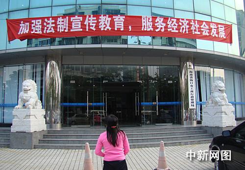 中新網(wǎng)?12月3日電(付美斌)3日下午,?谑泄ど叹执髽钦T口上方掛出的一條橫幅“加強(qiáng)法制宣傳教育,服務(wù)經(jīng)濟(jì)社會(huì)發(fā)展!币鹇啡岁P(guān)注:“出現(xiàn)‘砒霜門’事件是工商局工作人員法制意識(shí)淡?”