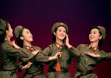 所有的演出沒有聲光電等現(xiàn)代化背景和裝飾,沒有特制的服裝和奇特的道具,沒有過多的包裝,但卻沒有一個假唱。她們演出的12個節(jié)目中,除兩個舞蹈節(jié)目外,女演員們?nèi)看┸娧b表演。演員們的真情實感、精湛技藝、表演形態(tài)、人物刻畫,充分展現(xiàn)了深厚的民族藝術(shù)和人民軍豐富多彩的軍旅生活,贏得觀眾們發(fā)自肺腑的陣陣掌聲。