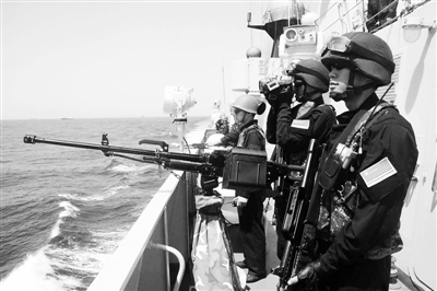 在演練籌備階段,曾出現(xiàn)一則耐人尋味的花絮:為檢驗被護商船的警惕性,編隊指揮所在不事先通知的情況下,特意安排特戰(zhàn)隊員乘小艇向一艘商船秘密靠近,結(jié)果該商船很快發(fā)現(xiàn)情況,向編隊求救并在第一時間向友鄰商船通報。編隊指揮員王志國作出指示:“要將反海盜的防護網(wǎng)絡(luò)向被護商船末端延伸,通過軍地攜手共同打造一體化安全防護平臺!