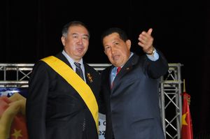 中新網(wǎng)12月23日電 據(jù)外交部網(wǎng)站消息,22日,在中國(guó)委內(nèi)瑞拉高級(jí)混委會(huì)第八次會(huì)議閉幕式上,委內(nèi)瑞拉總統(tǒng)查韋斯向中國(guó)駐委大使張拓授予弗朗西斯科·德米蘭達(dá)一級(jí)勛章,以表彰張拓大使在任2年2個(gè)月期間為中委共同發(fā)展的戰(zhàn)略伙伴關(guān)系和全方位的平等互利合作所作的貢獻(xiàn)。