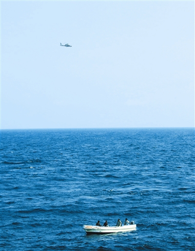 12時09分,中國海軍護航編隊接到求救信號后,迅速進入一級反海盜部署。馬鞍山艦、溫州艦、巢湖艦分別從不同方位向事發(fā)海域高速機動,巢湖艦艦載直升機搭載特戰(zhàn)隊員緊急升空進行搜索查證。