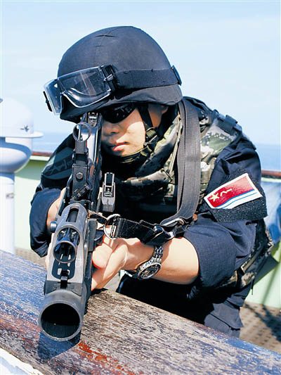 12時28分,巢湖艦在艦載直升機的引導(dǎo)下鎖定了正在轉(zhuǎn)向“鴻達(dá)號”商船的疑似海盜快艇。在發(fā)射3枚信號彈予以警告后,疑似海盜快艇被迫停車,隨后趕到的馬鞍山艦迅速派出2艘小艇靠近,特戰(zhàn)隊員將其驅(qū)離。