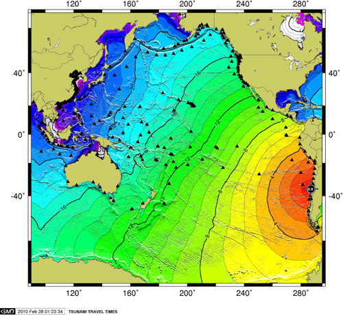 由于此次地震已在智利沿岸引發(fā)了海嘯,位于夏威夷的太平洋海嘯警報(bào)中心27日14時(shí)46分向智利、秘魯和厄瓜多爾發(fā)布了第一份海嘯警報(bào)信息,隨后又將預(yù)警范圍擴(kuò)大至整個(gè)中美洲以及太平洋國家和地區(qū)。智利、秘魯、法屬波利尼西亞 、澳大利亞 、新西蘭 、日本等國已經(jīng)發(fā)布了官方的海嘯警報(bào)。俄羅斯、菲律賓等國則表示,將密切監(jiān)視海嘯監(jiān)測數(shù)據(jù)情況,然后決定是否發(fā)布海嘯預(yù)警。