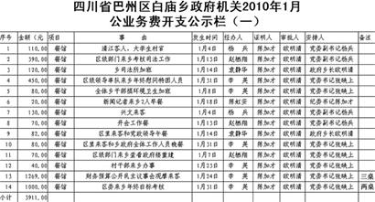 帖子內(nèi)名為《四川省巴州區(qū)白廟鄉(xiāng)政府機關2010年1月公業(yè)務費開支公示》的表格顯示,1月份,鄉(xiāng)政府支出公業(yè)務費44筆,共8240.5元,其中最大的一筆開支是,1月24日招待“財務預算公開民主議事會觀摩來客”,請客三桌,花費1269元,最小的一筆開支僅為“購買信紙”,花費1.5元。