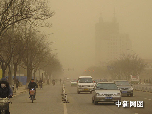 中新網(wǎng)廊坊3月20日電 (記者 宋敏濤)今晨,河北大部及京津地區(qū)出現(xiàn)明顯揚(yáng)塵。有著“花園城市,溫馨之都”美譽(yù)的河北廊坊也難能幸免沙塵襲擊。今天上午,在廊坊街頭,受沙塵影響能見度不足千米。停了一晚的汽車上落滿一層黃色塵土,街上行人遮鼻掩口艱難前行。