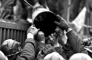 至昨晚記者發(fā)稿時,離事故發(fā)生已有30多個小時,王家?guī)X礦透水事故中的153名被困人員仍無音訊。據(jù)下井的救援人員說,水面距離礦口約1000米,積水已沒過巷頂。