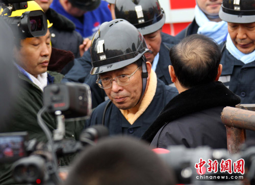 中新網(wǎng)河津3月31日電(張云)王家?guī)X礦透水事故搶險進(jìn)入第四天,救援搶險仍在緊張進(jìn)行。31日中午,國家安監(jiān)總局局長駱林,安全監(jiān)管總局副局長、國家煤礦安監(jiān)局局長趙鐵錘,山西省長王君下井視察搶險進(jìn)度。