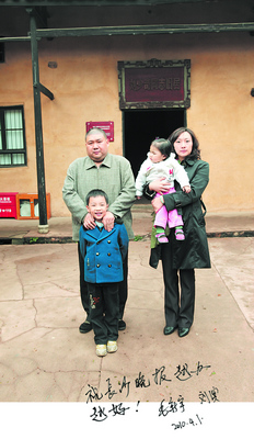 毛新宇說(shuō),這是首次提出毛澤東思想,特別具有歷史意義。說(shuō)完,他很是欣慰地招呼家人在展示牌前合影。