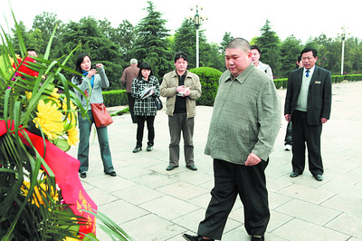 昨日下午,毛新宇在韶山祭奠完他的爺爺毛澤東后,特地繞道寧鄉(xiāng)縣花明樓鎮(zhèn)來(lái)到劉少奇同志紀(jì)念館祭奠他“敬愛(ài)的劉少奇爺爺”。在整理花籃綬帶時(shí),他特意叫上了6歲多的兒子毛東東;ɑ@綬帶上寫(xiě)著:“獻(xiàn)給敬愛(ài)的劉少奇爺爺!毛新宇、劉濱、毛東東、毛甜懿敬”。
