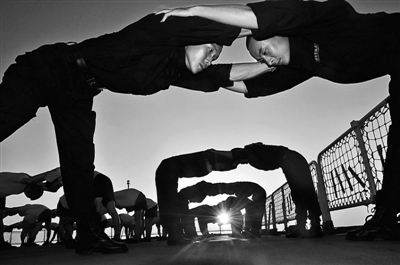 體力就是戰(zhàn)斗力。如何能讓長期戰(zhàn)斗在遠(yuǎn)海大洋的護(hù)航官兵保持健康的體魄?“巢湖”艦隨艦特戰(zhàn)分隊分隊長楊樁和艦導(dǎo)彈指揮儀班班長、上士李建紅動起了腦筋,他們倆一個在大學(xué)里學(xué)的是體育專業(yè),一個曾獲得過健身教練資格證書,對如何進(jìn)行健身活動都頗有心得。“艦艇工作的特點就是久坐,工作生活環(huán)境濕氣重且容易缺氧……”經(jīng)過與艦上官兵交流,楊樁和李建紅決定編一套“護(hù)航健身操”。