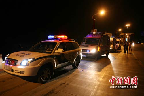 4月15日21:10左右,車隊在翻越5000多米的海子山時,四川省人民醫(yī)院一臺奔馳救護車發(fā)生爆胎,經過40多分鐘的緊急搶修,故障排除。眼看就要抵達石渠縣城了,車隊中再次傳來一聲“砰”的響聲,車隊中又有車胎發(fā)生爆胎。車隊不得不停下。