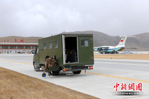 抗震救災(zāi)以來,有這樣一組數(shù)字浸透了軍人們的汗水:截至17日,空軍運(yùn)輸機(jī)共飛行60多架次,運(yùn)送救援人員1163名、傷員和陪護(hù)人員1352名、車輛8臺(tái)、物資608.7噸,并在原本不具備夜航條件的玉樹機(jī)場夜間飛行13架次。