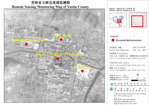 截至目前,通過國際減災憲章(Charter)機制,已獲取災前影像數(shù)據(jù)28景、災后4景,為青海玉樹地區(qū)房屋倒損、基礎設施損毀、次生災害等情況的評估工作提供了重要的數(shù)據(jù)基礎,發(fā)揮了重要的決策支持作用。與此同時,向中國氣象局進行了共享。
