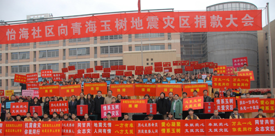 中新網(wǎng)北京4月20日電 (南若然)舉國(guó)齊哀悼國(guó)殤,滿腔愛(ài)心獻(xiàn)玉樹(shù)。20日上午,怡海社區(qū)舉行抗震救災(zāi)捐贈(zèng)大會(huì),5000余名怡海社區(qū)居民、公司員工、師生參加此次捐贈(zèng),共募得捐款121萬(wàn)余元。該款項(xiàng)將通過(guò)由民政部指定的接收玉樹(shù)捐款單位,捐往青海玉樹(shù)受災(zāi)地區(qū)。