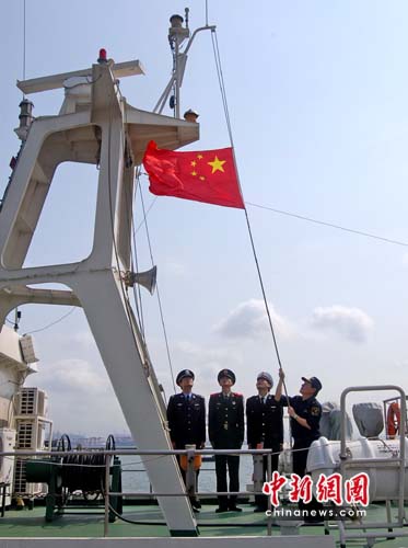 中新網(wǎng)廣州4月21日電 (索有為 陶宇峰)21日,中國海關(guān)機(jī)構(gòu)中唯一的島上沒有居民的海島海關(guān)下半旗為玉樹地震遇難同胞志哀,海關(guān)關(guān)員還在緝私艇上為遇難同胞集體默哀。