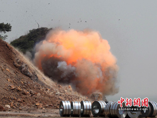 中新網(wǎng)九江4月28日電(胡國林 李濤淵)“一、二、三”,隨著一聲令下,4月27日中午,在江西九江都昌縣磯山湖附近一偏僻的時子山腳下,立即出現(xiàn)一個巨大的“火球”,原來,這里正在實施銷毀日軍侵華時期遺留下來的炮彈。
