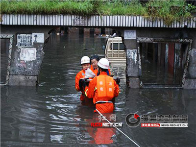 6日早上7時50分,新化消防大隊接到報警,位于城區(qū)的立新橋社區(qū),因雨水淤積,致使一整棟大樓的人員被困。大隊人員在趕到現場后,立即開展救援活動,因缺乏救援船,中隊指導員帶領中隊班長助理只身游過去查看情況,并救出有心臟病的老人。
