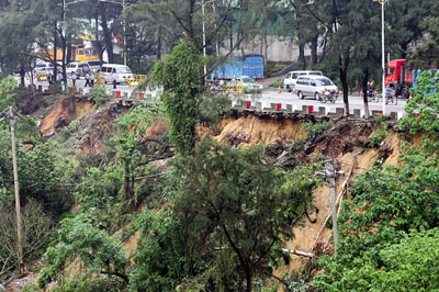 塌方的路基長200多米,從30多米高的路基上塌方滑落下去,形成的泥石流將該路段下方約2000平方米臨時建筑沖垮,其中一間收垃圾的簡易平房被泥石流埋住。有居民反映,道路的排水管道常有人隨便倒淤泥,導(dǎo)致排水不暢,而暴雨則滲入路基泥土中,可能加劇導(dǎo)致了塌方并形成泥石流。(記者姚顥、實習(xí)生楊勝利)