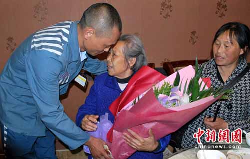 劉元奎扶著母親,牽著女兒,走進了飯店的餐廳里,與家人共進午餐。8年前,他因犯罪被判17年有期徒刑,此后便再也沒有見到過母親。母親用一雙視力不佳布滿皺紋的眼睛不停地打量著兒子。老母親說:“兒!我都過80了,今天以后還能不能再見到你喲?”母親的話如針尖刺在了劉元奎的心頭!皨!我一定好好改造,我剛剛減了3年刑,兩年后就可以出來了,你老人家一定要等我!”劉元奎委托監(jiān)獄民警買來一束康乃馨,把鮮花送到了母親手中說:媽媽,祝你母親節(jié)快樂!