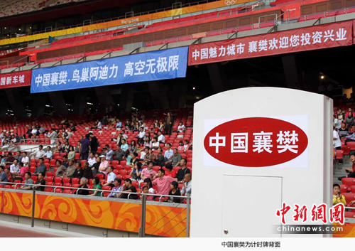 目前,襄樊市已在鳥(niǎo)巢體育場(chǎng)外圍懸掛236面宣傳襄樊形象的廣告彩旗,場(chǎng)內(nèi)懸掛巨幅宣傳標(biāo)語(yǔ)20幅,在阿迪力居住的小屋三面噴繪襄樊古城風(fēng)貌、古隆中、汽車城等內(nèi)容的宣傳片。下一步,還將在鳥(niǎo)巢內(nèi)舉辦襄樊日等活動(dòng),以提高襄樊知名度,提升襄樊形象。