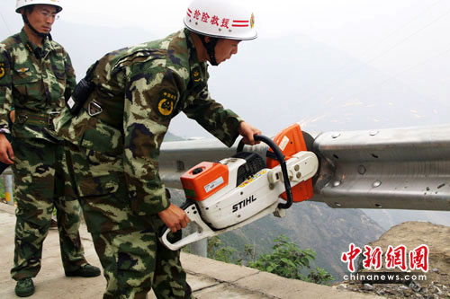 據(jù)汶川縣公路局局長王永新介紹,排險工作結束后,汶川縣公路部門將爭取用6個小時左右時間搶通出一條臨時過往便道。目前,汶川縣公路部門已出動30名路政、道班人員和4輛裝載車原地待命,只等山體排險工作結束,立刻開展垮塌路段的土石清理,全力搶通道路。