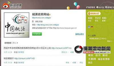 桃源縣在去年11月2日首次開通新浪微博開始了政府網(wǎng)絡(luò)問政的嘗試,為湖南省乃至全國第一家政府微博。在開通的半年多時間里,“桃源微博”經(jīng)歷了由政績發(fā)布平臺到注重桃源風(fēng)土人情宣傳、注重與網(wǎng)友互動的改變。雖然是湖南省內(nèi)、國內(nèi)首個政府微博,桃源縣政府的微博卻不夠搶眼,“桃源微博”極少出現(xiàn)在公眾視野中,甚至一度被云南微博搶去“首個政府微博”稱號。