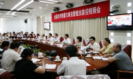會(huì)議由農(nóng)業(yè)部總經(jīng)濟(jì)師、全國(guó)農(nóng)作物重大病蟲暨治蝗指揮部副指揮長(zhǎng)陳萌山主持。在31個(gè)省、自治區(qū)、直轄市設(shè)立了分會(huì)場(chǎng),各省(區(qū)、市)農(nóng)業(yè)(農(nóng)牧、畜牧)廳(委、局),新疆生產(chǎn)建設(shè)兵團(tuán)農(nóng)業(yè)局、黑龍江農(nóng)墾總局負(fù)責(zé)人,有關(guān)省(區(qū)、市)農(nóng)作物重大病蟲暨蝗災(zāi)防治指揮部成員,重點(diǎn)市、縣蝗蟲防治領(lǐng)導(dǎo)機(jī)構(gòu)成員等,共1600余人參加會(huì)議。