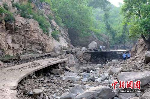 據介紹,13日晚20時許,淶水縣九龍鎮(zhèn)突降百年不遇特大暴雨,并伴有大風冰雹,頃刻間,山洪裹著巨石、泥漿呼嘯而下,席卷了九龍鎮(zhèn)沿河道的六個村莊,致使嶺南臺、莊里、莊頭、高鋪、柏林城、南莊六個村受災嚴重。據初步估算,受災人口3100多人、牲畜2000多頭(只),倒塌損壞房屋499間、橋梁5座、車輛31輛,毀壞道路10.7公里、耕地1312畝、樹木16925棵,另有兩人失蹤,直接經濟損失達8197.8萬元。
