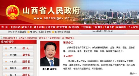 據(jù)山西省人民政府網(wǎng)站“省政府領(lǐng)導”欄目顯示,日前,李小鵬同志任山西省政府黨組副書記、常務(wù)副省長職務(wù)。