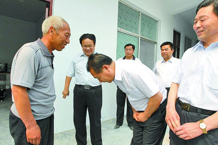 6月21日,省高院院長(zhǎng)張立勇率領(lǐng)省高院和商丘市中院兩級(jí)法院的領(lǐng)導(dǎo)班子來到柘城縣農(nóng)民趙作海的新家。針對(duì)因法院判錯(cuò)案給趙作海一家?guī)淼睦Ь,張立勇院長(zhǎng)向趙作海鞠躬致歉。面對(duì)高院院長(zhǎng),趙作海感到極為意外,說:“我對(duì)現(xiàn)在的生活很滿意,現(xiàn)在是滿天的云彩都散了……”當(dāng)天上午,兩級(jí)法院還就如何避免再次發(fā)生類似案件專門進(jìn)行了反思。