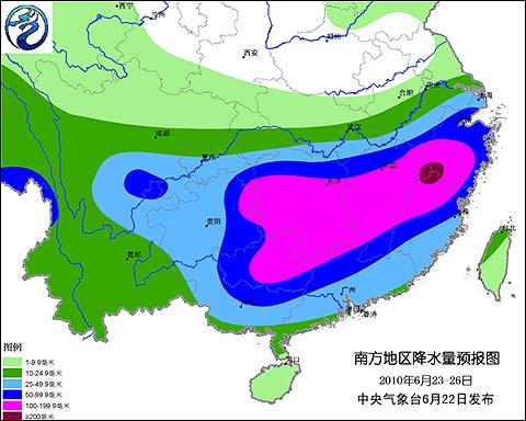 預(yù)計(jì)23日至26日,江淮、江南、華南大部以及西南地區(qū)東部等地又將出現(xiàn)一次強(qiáng)降雨過程。貴州東部、湖南、江西、浙江、福建、廣西、廣東北部有大到暴雨,局部地區(qū)有大暴雨,并將伴有短時雷雨大風(fēng)等強(qiáng)對流天氣;過程降雨量有50-120毫米,局部地區(qū)可達(dá)150-260毫米。湖南、江西、福建、廣西等地的汛情將進(jìn)一步發(fā)展,建議各地、各有關(guān)部門及時采取措施,加強(qiáng)防范區(qū)域性洪澇災(zāi)害和嚴(yán)重次生災(zāi)害。