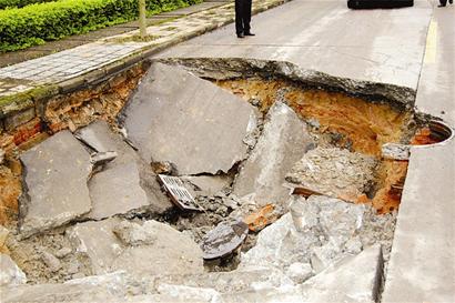 而在附近一工廠值班的陳先生說,事發(fā)時(shí),整個(gè)值班室都在顫抖。據(jù)他介紹,橫一路在開發(fā)區(qū)投入使用已有10余年,“可能是最近幾天下雨,路面地下淘空了,才突然下陷。”