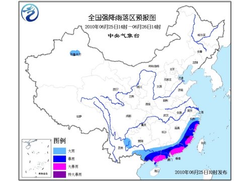 中新網(wǎng)6月25日電 中央氣象臺6月25日06時繼續(xù)發(fā)布暴雨黃色預警:預計,6月25日08時到6月26日08時,浙江中南部、福建大部、廣東、廣西中南部有大到暴雨,其中,廣西東部、廣東東部及云浮地區(qū)、福建東部等地的部分地區(qū)有大暴雨;上述部分地區(qū)并伴有短時雷雨大風等強對流天氣。另外,云南東部的部分地區(qū)有大雨。