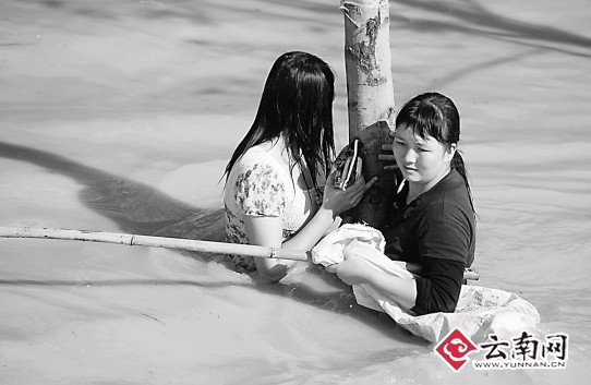 水中,許多孩子正卷起褲腳在玩耍,完全不知道這場災害的后果。據(jù)大龍井村黨小組書記秦萬福說,此次遭遇的暴雨是百年難遇的,村里面80多歲的老人都是從來未遇見過。昨日上午9時,聽說附近的龍泉水庫有可能決堤后,整個村寨近1500多名男女老少來不及做任何事情,在村干部的組織下,用摩托車等能派上用場的車輛,趕緊把村民撤離到了山頂上。