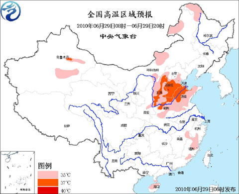 中新網(wǎng)6月29日電 中央氣象臺29日06時(shí)繼續(xù)發(fā)布高溫藍(lán)色預(yù)警:預(yù)計(jì),今天白天,內(nèi)蒙古東北部和中部的部分地區(qū)、黑龍江西北部、山西大部、河北大部、天津、河南大部、山東大部、安徽北部、江蘇西北部、福建北部和南部的部分地區(qū)、江西東北部的部分地區(qū)、海南北部等地有35~37℃、部分地區(qū)38℃的高溫天氣,其中,河北南部的局部地區(qū)氣溫可達(dá)40℃。