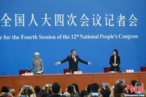 3月16日,國(guó)務(wù)院總理李克強(qiáng)在北京人民大會(huì)堂會(huì)見(jiàn)中外記者并回答記者提問(wèn)。中新社記者 湯彥俊 攝