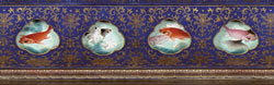清乾隆磁胎洋彩青地金花魚游春水瓶(局部展開圖)