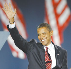 中新網(wǎng)11月6日電 臺灣《中國時報》今天頭條報道,2008年美國大選揭曉,歷史新頁從此展開。代表民主黨、現(xiàn)年四十七歲的伊利諾伊州聯(lián)邦參議員巴瑞克•奧巴馬(Barack Obama)一如各方預(yù)期,擊敗共和黨候選人麥凱恩,當(dāng)選美國第四十四任總統(tǒng),而且是第一位黑人總統(tǒng),象征兩百多年來美國政治上的種族藩籬終于粉碎。