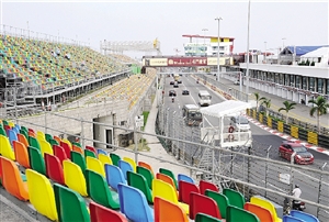 現(xiàn)時賽事控制中心、維修中心、水塘大看臺及葡京彎搭建的賽車看臺已準備就緒,所有看臺均設(shè)有座位,車迷無須席地而坐。位于控制中心對面的大看臺及葡京彎看臺設(shè)有帳篷,可遮風擋雨。但近日有強烈季候風吹襲,為安全起見,帳篷須押后設(shè)置。兩個主要看臺座位比往年有所增加,相信本屆可吸引更多觀眾入場,氣氛更熱鬧。