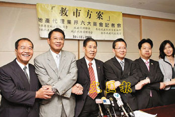 六大地產(chǎn)代理商會(香港專業(yè)地產(chǎn)顧問商會、地產(chǎn)代理聯(lián)會、香港地產(chǎn)代理專業(yè)協(xié)會、香港地產(chǎn)代理商總會、地產(chǎn)代理管理協(xié)會、新界地產(chǎn)代理商會),10日舉行記者會公布該會提出的六項“救市方案”。祥益地產(chǎn)總裁、香港專業(yè)地產(chǎn)顧問商會會長汪敦敬稱,近期銀行明顯收緊借貸限制,幾乎三個想買樓的買家,只有一個能夠成功取得銀行貸款,情況“很不正!薄
