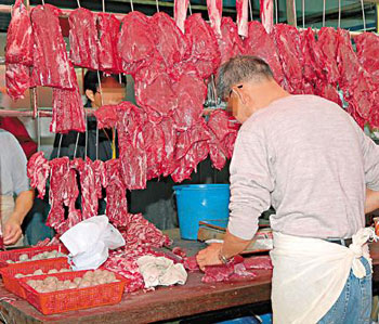 “毒牛肉”充斥市面,無良肉商罔顧市民健康,出售由冷藏充新鮮及含防腐劑的“假鮮牛肉”。該報追查一間位于馬鞍山一街市內(nèi)的牛肉檔,該店為街市內(nèi)唯一一間牛肉店,屬獨(dú)市生意,加上本月初才獲消費(fèi)者委員會“每周精明格價”網(wǎng)內(nèi),被列為該區(qū)牛肉價格最低的肉檔,揭發(fā)所賣的都為“蠱惑牛肉”。