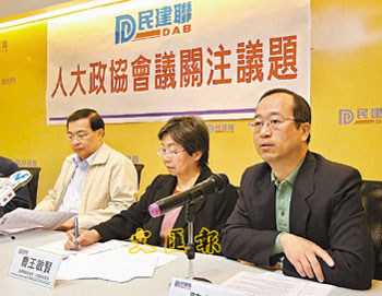 香港的全國政協(xié)委員及人大代表2日會(huì)陸續(xù)啟程出發(fā),參與在北京舉行的兩會(huì)。來自民建聯(lián)的全國政協(xié)及人大代表,計(jì)劃在這次兩會(huì)期間分別以建議和提案的方式,提出17項(xiàng)建議,其中主要集中于與珠三角融合,CEPA合作,以及推動(dòng)內(nèi)地與香港金融合作等問題。自由黨4名全國政協(xié)委員也在1日公布已向全國政協(xié)提交的11份提案,建議加強(qiáng)和完善內(nèi)地與香港在金融、旅游、創(chuàng)意產(chǎn)業(yè),以及物流運(yùn)輸?shù)确矫娴暮献鳌?/p>