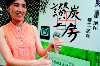 竹炭能當(dāng)冰吃?花蓮縣鳳林鎮(zhèn)贊炭工房把細(xì)磨的竹炭粉,摻入糯米粉,制成冰淇淋,有QQ的口感,而且真的有一股炭味,吃起來(lái)很不一樣。