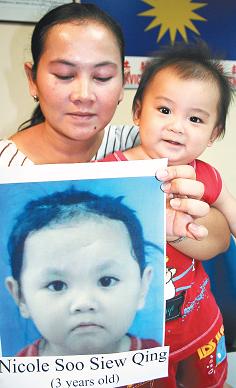 事主5日帶著只有9個月大的兒子艾比,向馬華公共服務(wù)及投訴部主任拿督張?zhí)熨n求助,希望透過媒體和公眾的幫助尋找愛女。