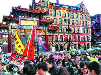 唐人街的精神文化生活也十分豐富。在一些商店里,甚至能找到中國(guó)內(nèi)地或香港出版并由專機(jī)空運(yùn)至曼城出售的報(bào)紙。每逢中國(guó)重大節(jié)日,尤其是農(nóng)歷新年,整個(gè)唐人街就會(huì)變成狂歡的海洋。蜂擁而至的本地居民與華人一道,在鞭炮齊鳴、鑼鼓喧天的喜慶氣氛下,加入到舞獅舞龍的龐大隊(duì)伍中。此情此景,讓游子們感覺(jué)仿佛重歸故鄉(xiāng)。