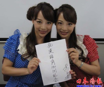 中新網(wǎng)7月21日電 據(jù)日本僑報報道,活躍在日本NHK電視臺漢語教學(xué)節(jié)目的中國湖北雙胞胎姊妹組合“鶯和燕”(中國名黃鶯、黃燕),7月19日在東京參加第二屆漢語節(jié)時,特地來到日本僑報社的展位前,聽取了該社創(chuàng)辦星期日漢語角的情況介紹。得知漢語角創(chuàng)辦三周年紀(jì)念大會將于8月8日在東京舉行時,姐妹倆非常高興地題寫了“祝漢語角150回”,表達(dá)她們對日本朋友學(xué)習(xí)漢語的支持。