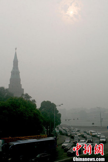 據(jù)當(dāng)?shù)丨h(huán)保單位檢測,近日莫斯科空氣污染的程度已經(jīng)超出正常值的3倍,處于嚴(yán)重污染狀態(tài)。衛(wèi)生部門官員對民眾發(fā)出了健康警示,居民外出要戴口罩,在室內(nèi)要掛濕毛巾,以粘住煙霧中的粉塵顆粒并凝結(jié)煙流。